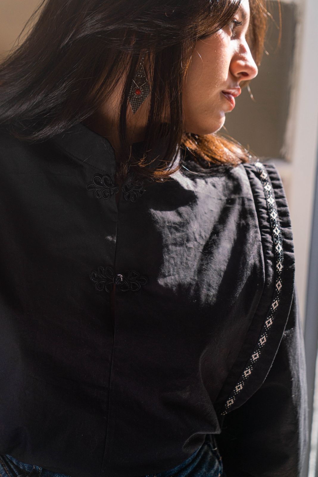Ayuur, la lune en amazigh, reflète une élégance naturelle et un charme discret. Réalisée en 100 % coton et rehaussée d’une touche amazighe marocaine, cette pièce séduit par ses manches bouffantes, sa fluidité et sa coupe raffinée.
